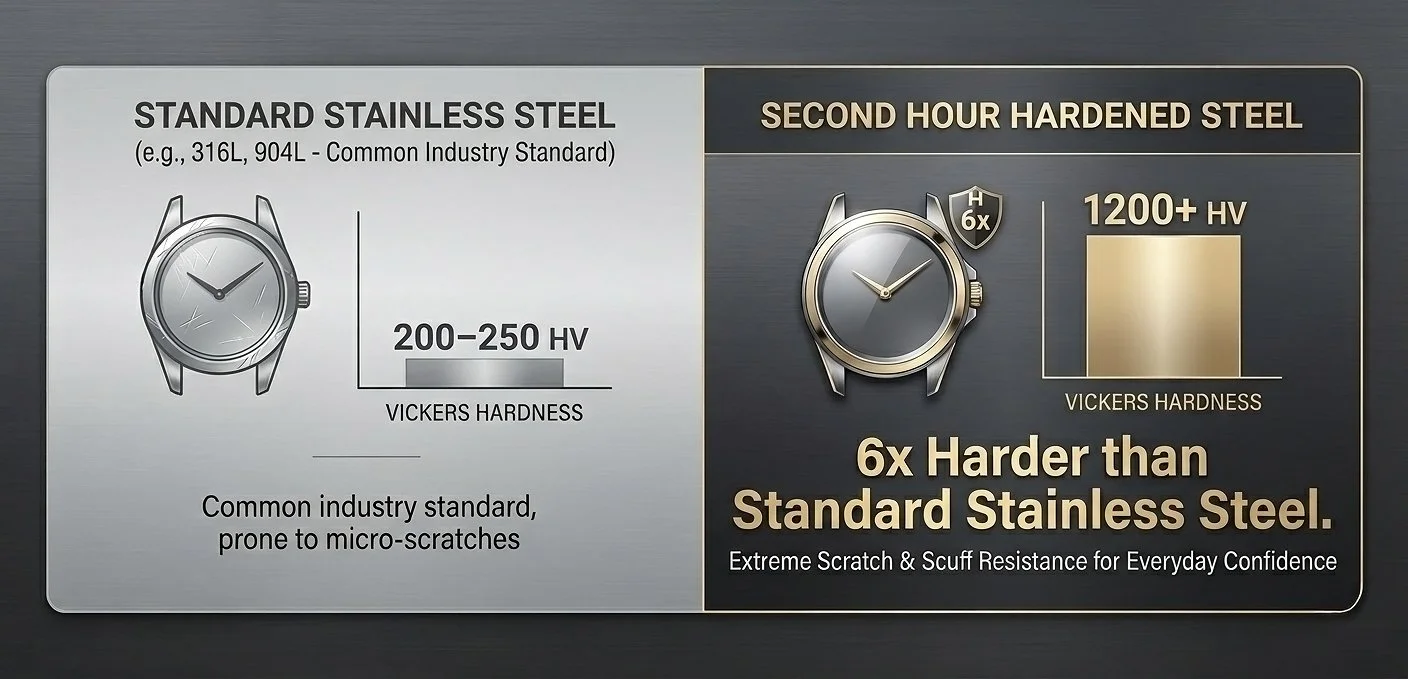 “Second Hour brings the very best from Australia’s beating cultural heart: the vibrant, cosmopolitan city of Melbourne. Our fully in-house designed and rigorously tested watches feature the finest Swiss and Japanese movements, wrapped in our legendary hi-tech surface hardening treatment.